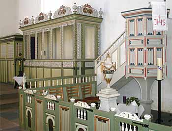 Selbst das Gestühl, die Empore und der Knyphauser Boden stammt aus dem 16. Jh.